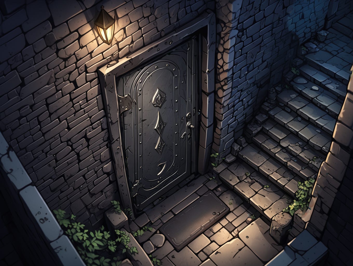 Two quick knocks struck the metal door, followed by a timed three-second pause, and another three knocks, evenly spaced out. A slit opened in the metal door, and a pair of eyes examined the scene. He observed the halfling step further back next to his “guard,” with his three “ladies” in brown. The slit closed, and another moment passed. Logan was about to say something – second guessing their plan – before the door opened. A rugged human man with a red and white bandanna motioned them in. The room was dimly lit by a sole candela. “Is this the quarry you shall be offering to the Deplorable Don?” The guard asked.