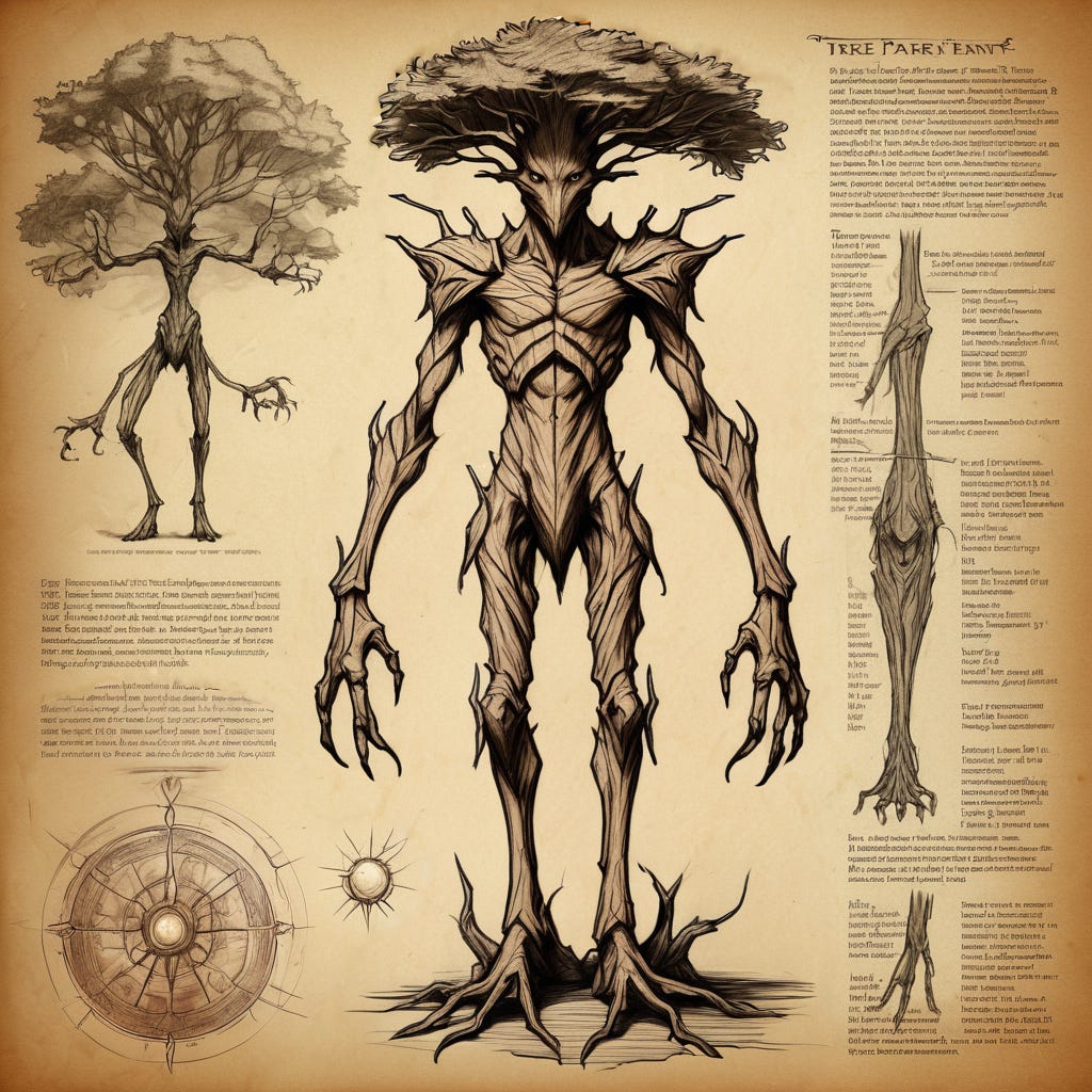 The mystical beasts of Nyrth can be as dangerous, if not more so, than regular fauna. If you’re not careful, they can entangle you and crush you with their powerful roots! Today, Rune will be sharing you an entry from her compendium, exploring the anatomy, abilities, and the dangers of treants.